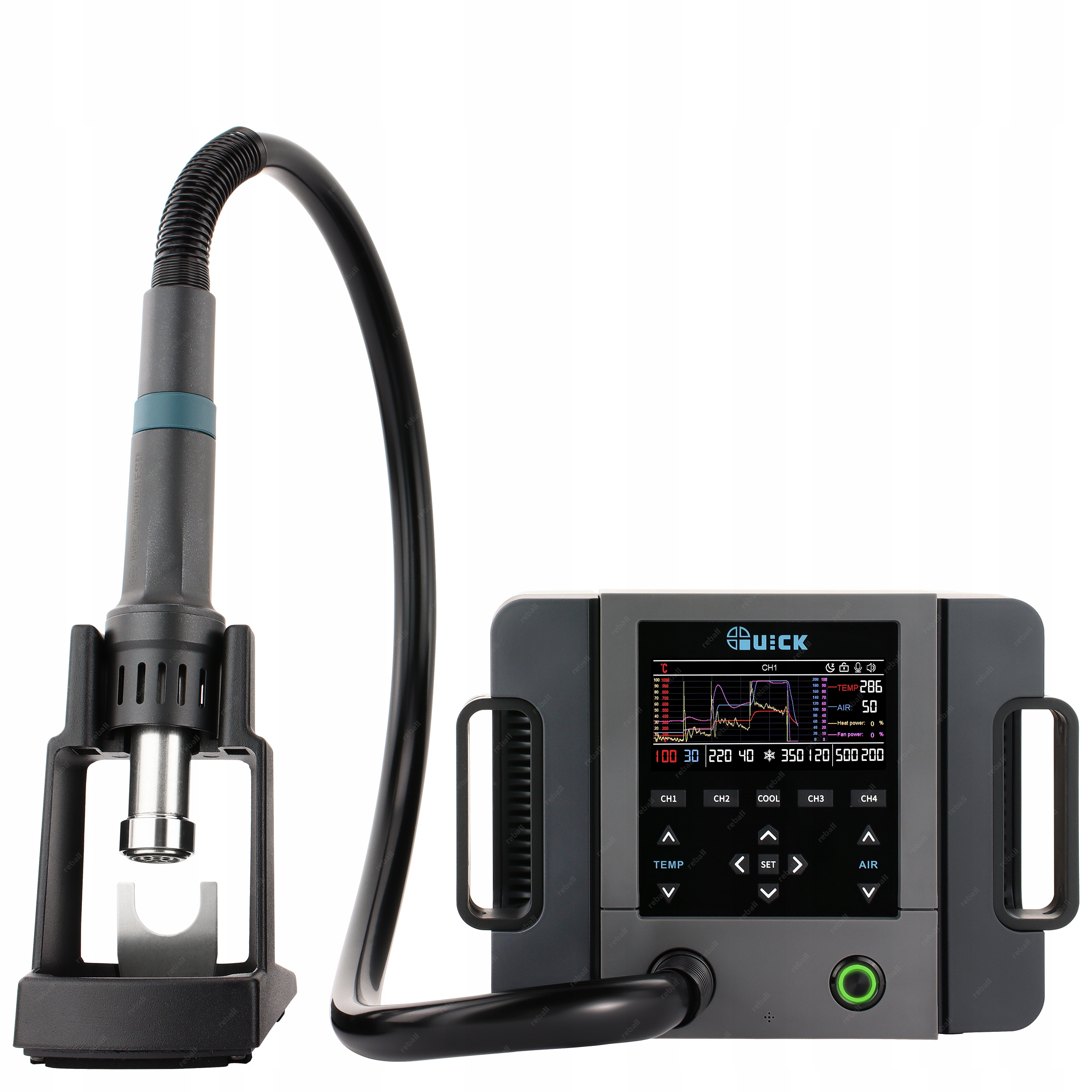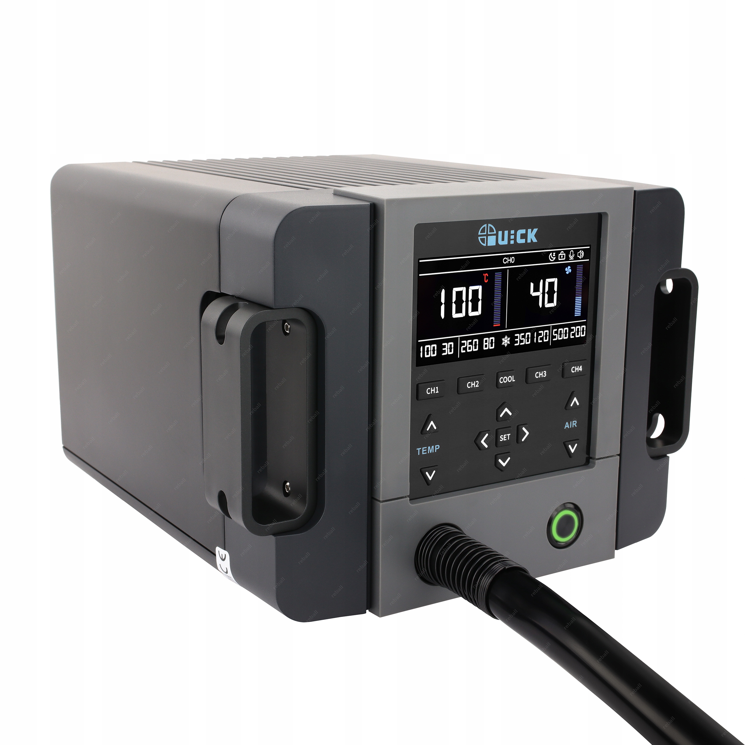 Stacja Quick 861 PRO wyposażona została w bardzo mocny element grzejny o mocy 1300W, stawiający ją w czołówce obecnie dostępnych rozwiązań.