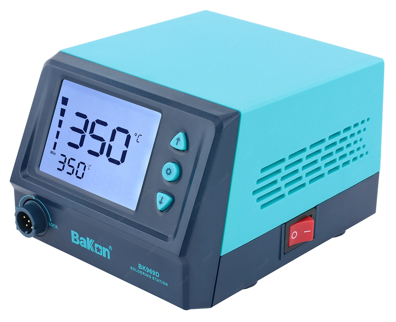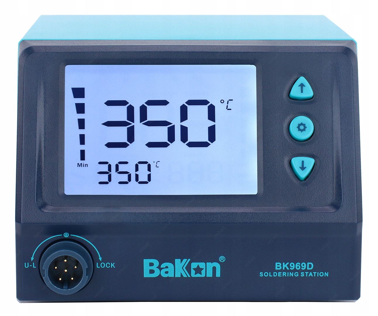 Bakon BK969D 65W to nowoczesna stacja lutownicza z płynną regulacją temperatury w zakresie od 180°C do 480°C oraz stabilizacją temperatury a co ważne dużym, cyfrowym i czytelnym wyświetlaczem LCD.