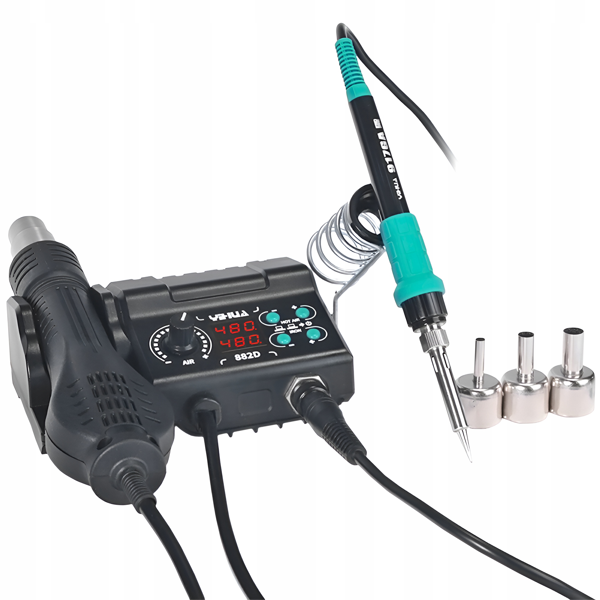 Stacja lutownicza 2w1 YIHUA 882D posiada maksymalny zakres temperatury 480°C dla obu kolb.