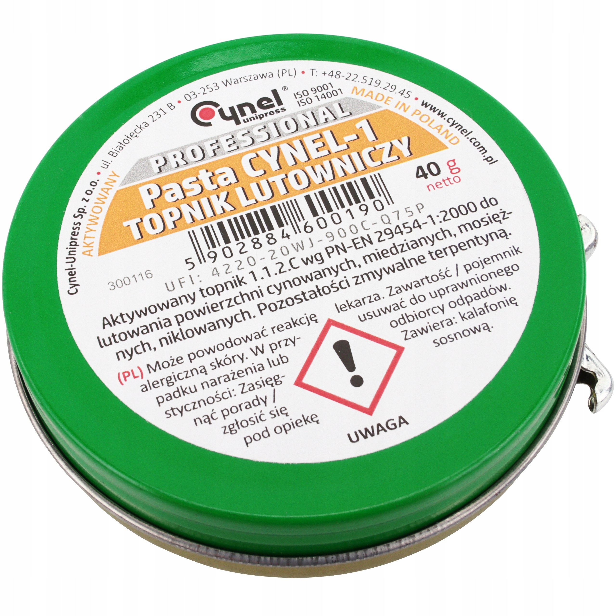 Pasta Cynel-1 to średnio aktywna pasta na bazie kalafonii z aktywatorami organicznymi.