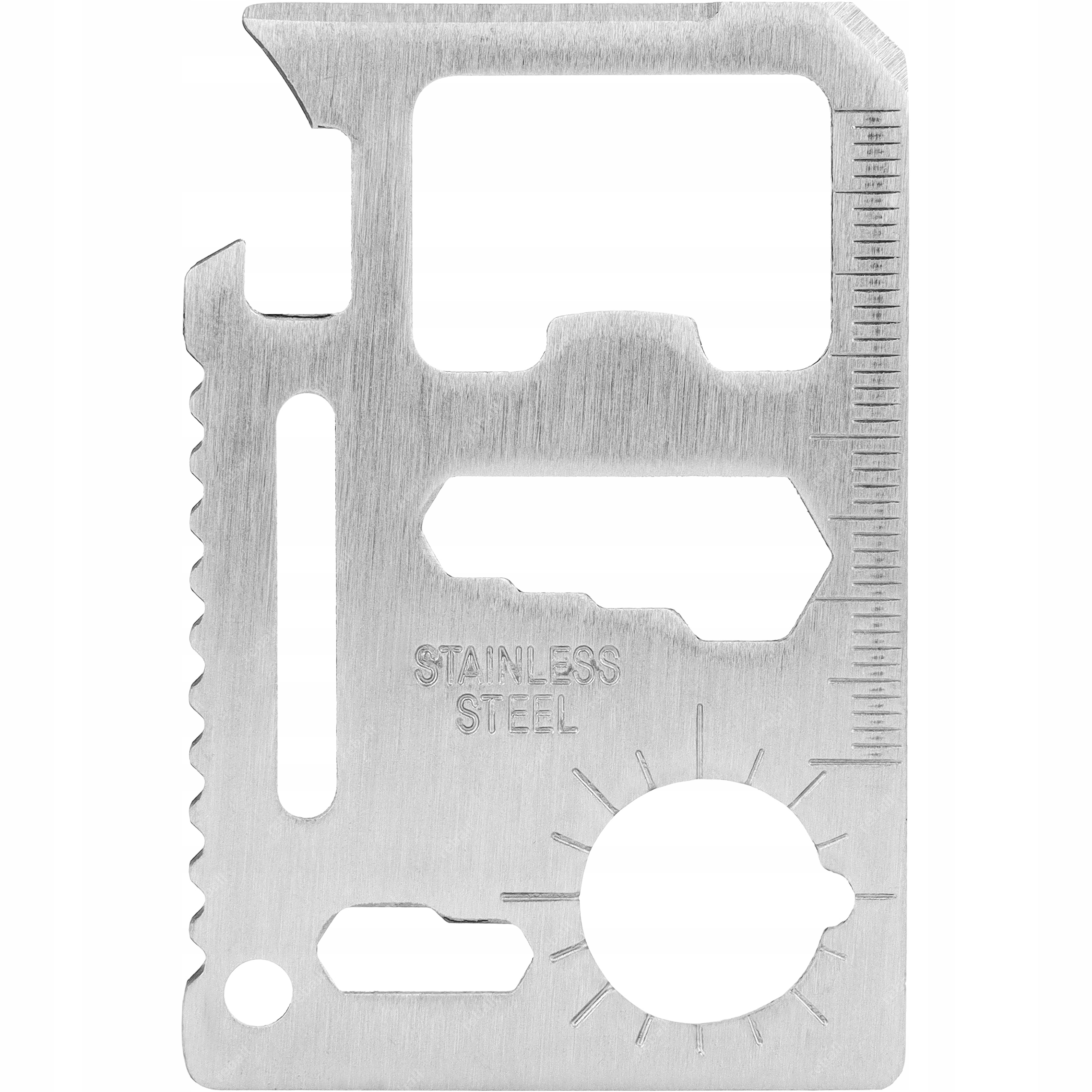Rewelacyjną karta multitool survivalowa 11w1 wykonana ze stali nierdzewnej, nieodłączny element wyposażenia dla każdego, kto szuka niezastąpionego towarzysza podczas przygód na łonie natury.