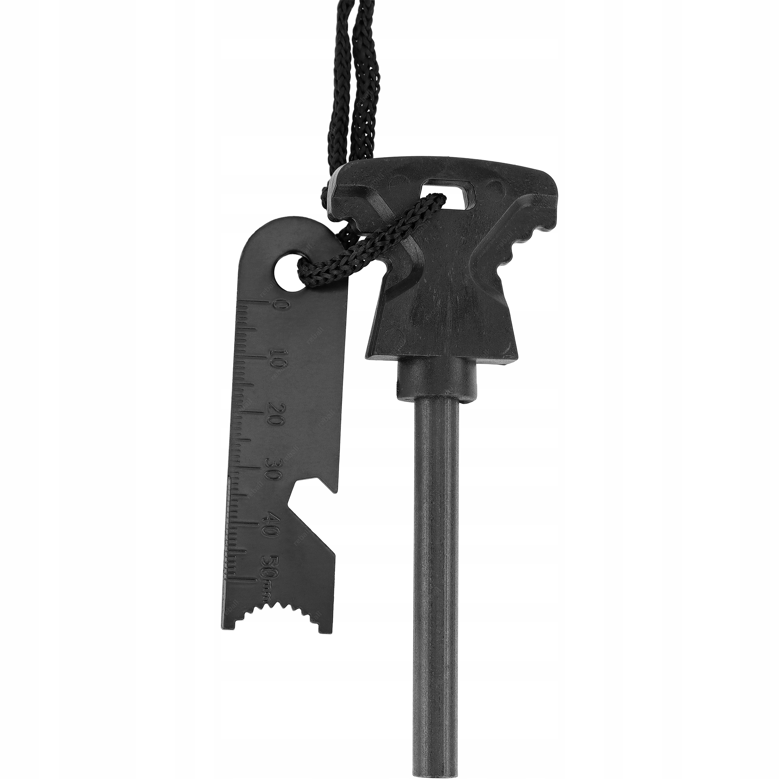 Krzesiwo magnezowe z blaszką, które nie tylko pomaga w rozpalaniu ognia w trudnych warunkach, ale również pełni rolę praktycznego narzędzia z wbudowanymi dodatkowymi funkcjami.