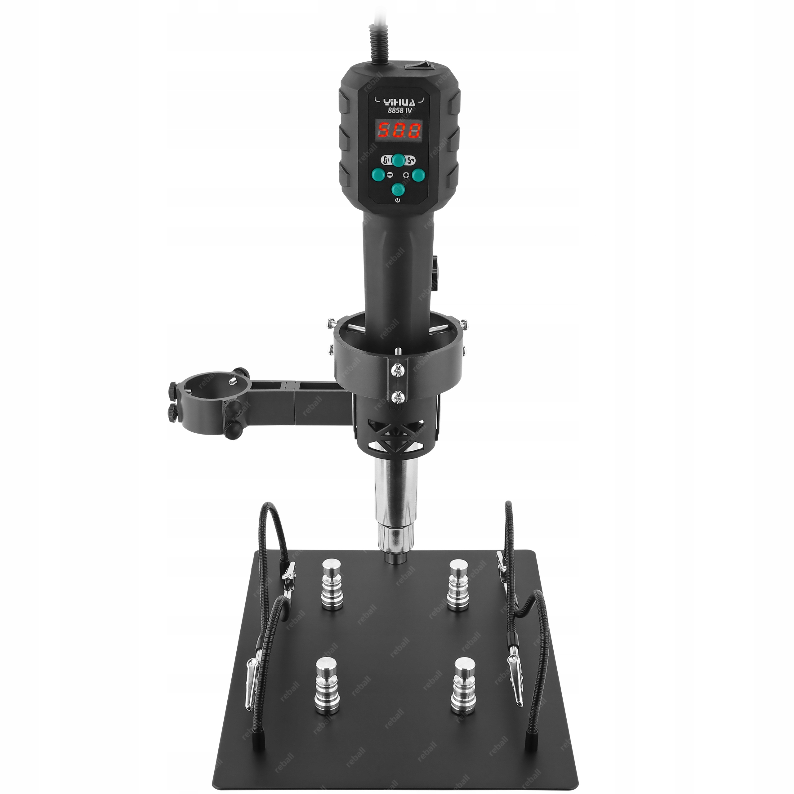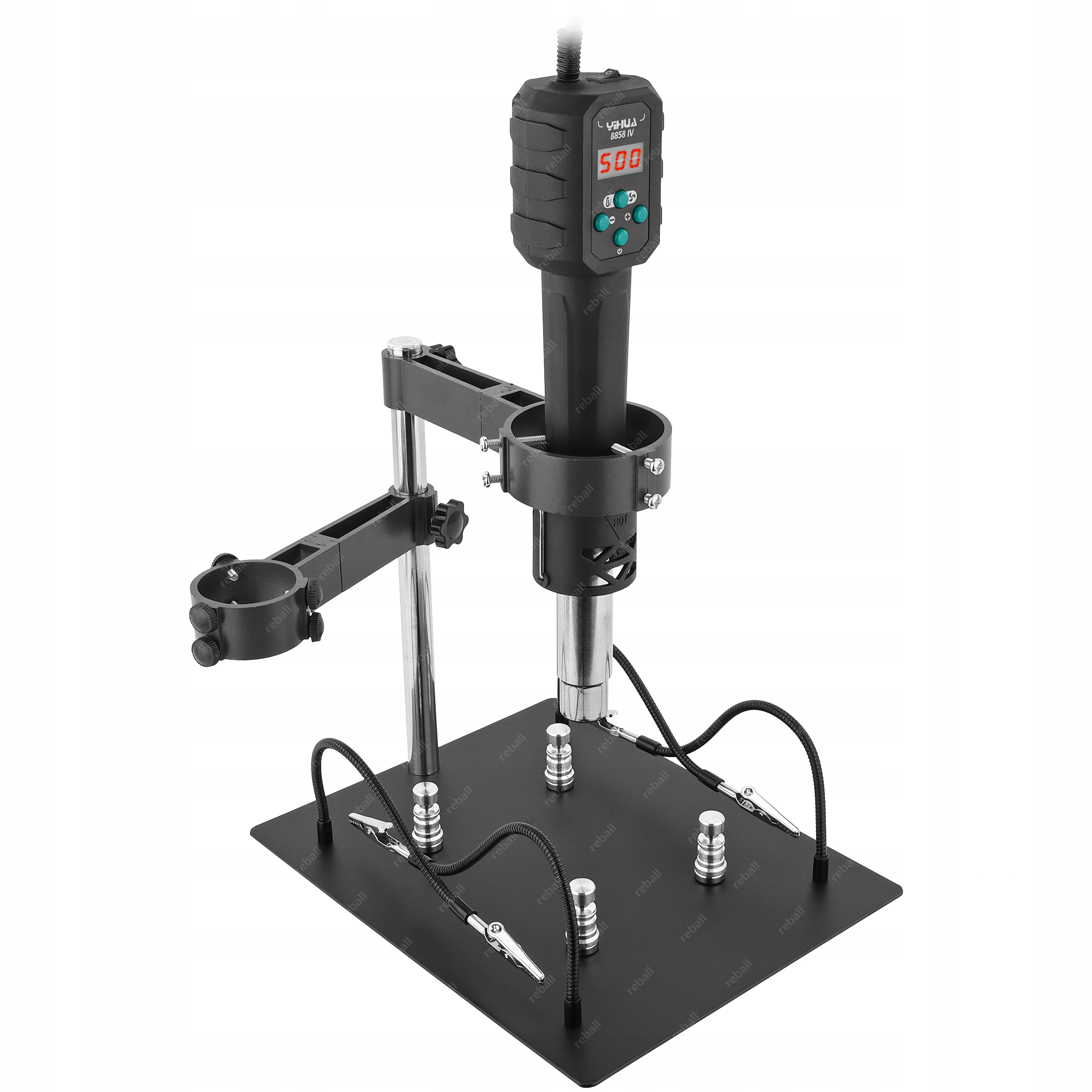 Profesjonalny zestaw serwisowy składający się z metalowego uchwytu do kolby hot air RT0416 oraz lutownicy hot air Yihua 8858-IV.