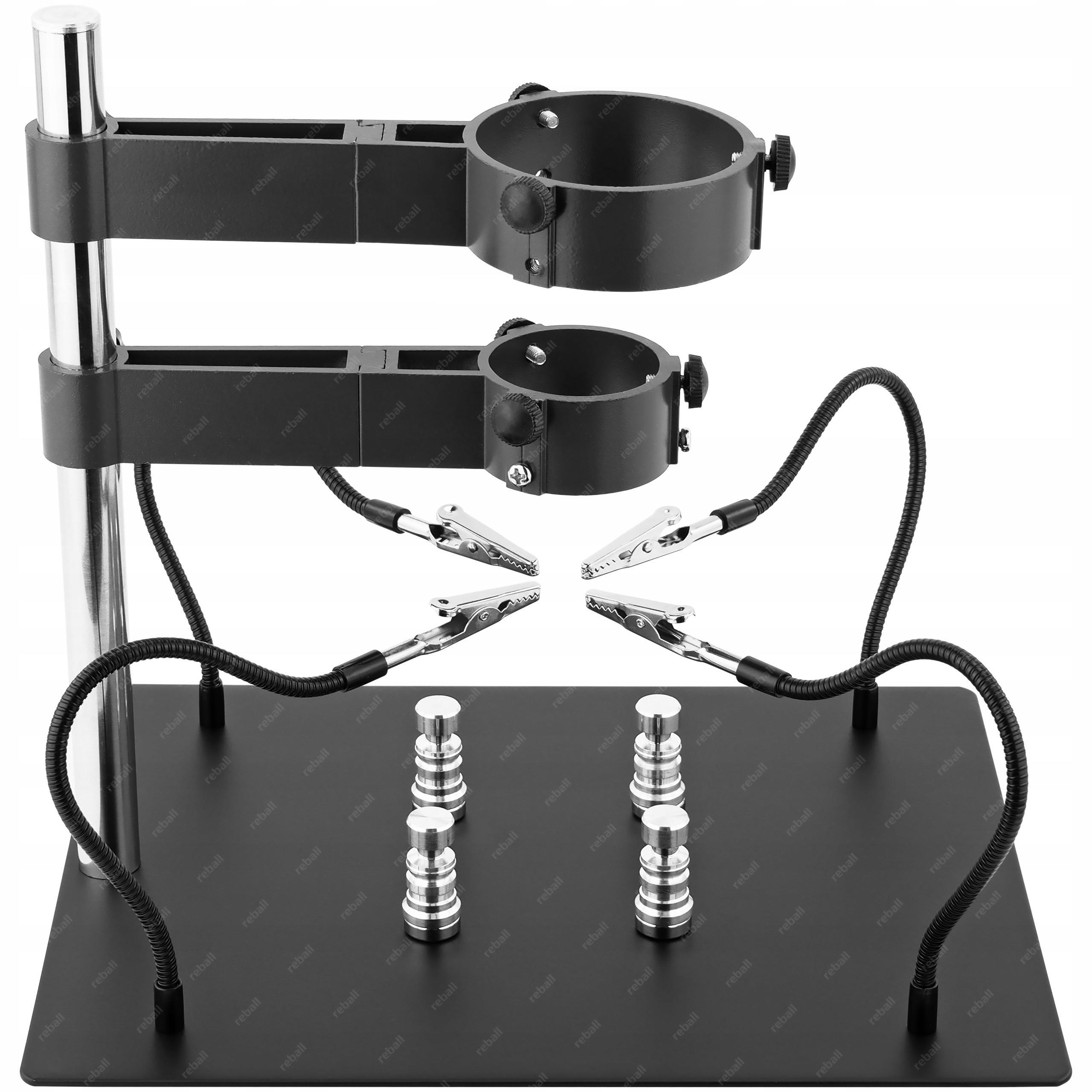 Zestaw zawiera cztery elastyczne ramiona, które pozwalają na stabilne i precyzyjne umieszczenie elementów, podczas lutowania lub innych prac na małych elementach.