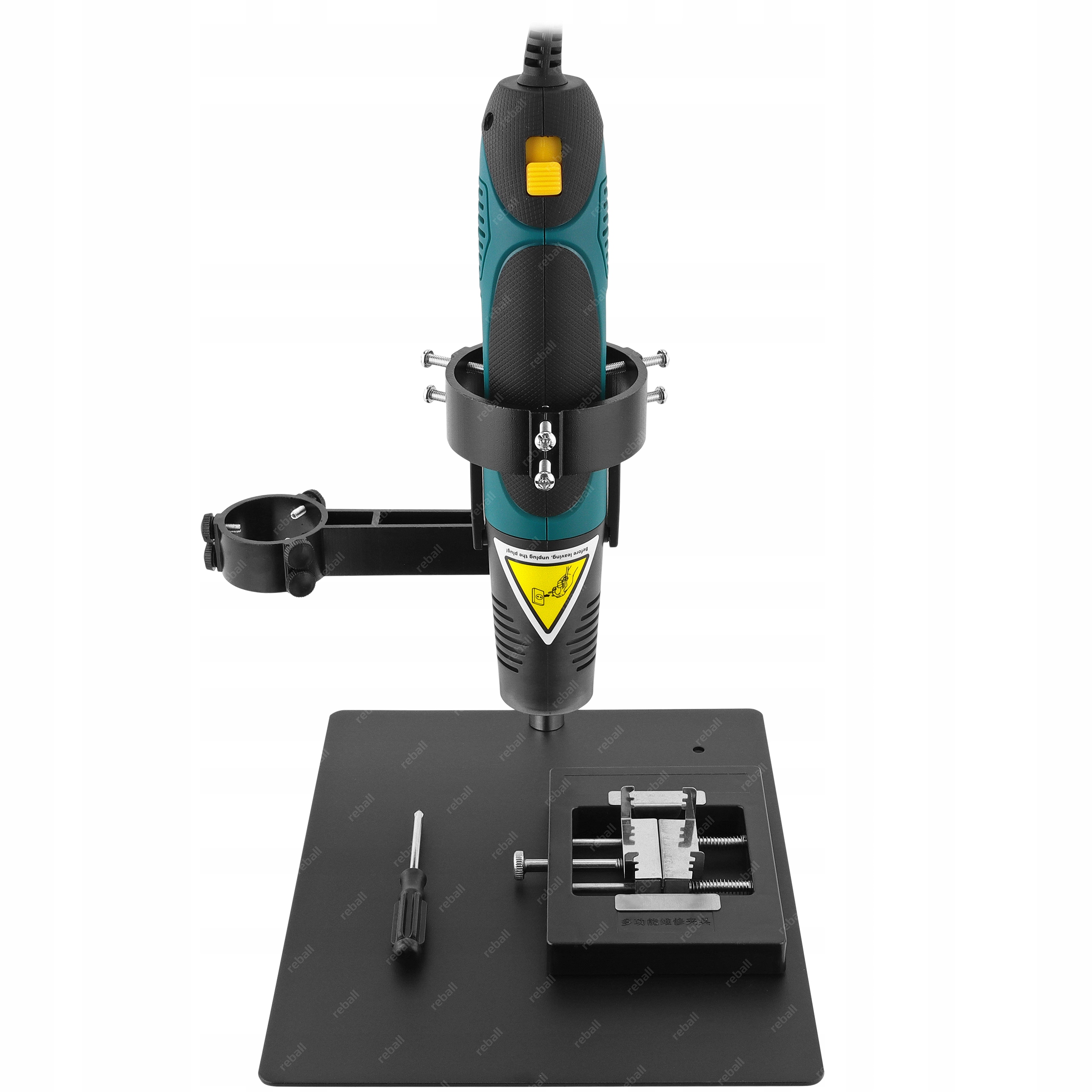 Dzięki regulowanym ramionom oraz dwóm rozmiarom uchwytów, pasuje do większości popularnych kolb hot air i opalarek ułatwiając organizację stanowiska pracy.