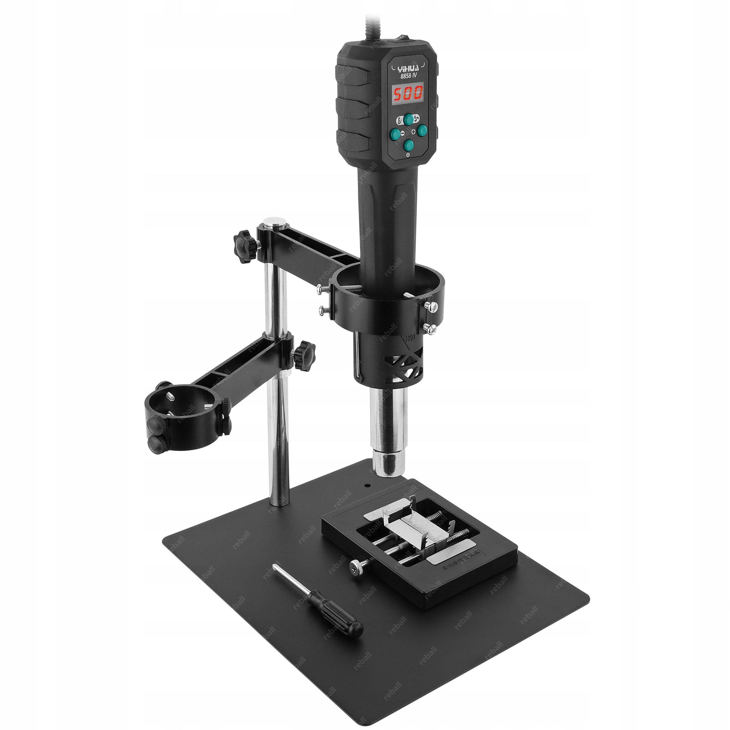 Profesjonalny zestaw serwisowy składający się z metalowego uchwytu do kolby hot air TE-812 oraz lutownicy hot air Yihua 8858-IV.