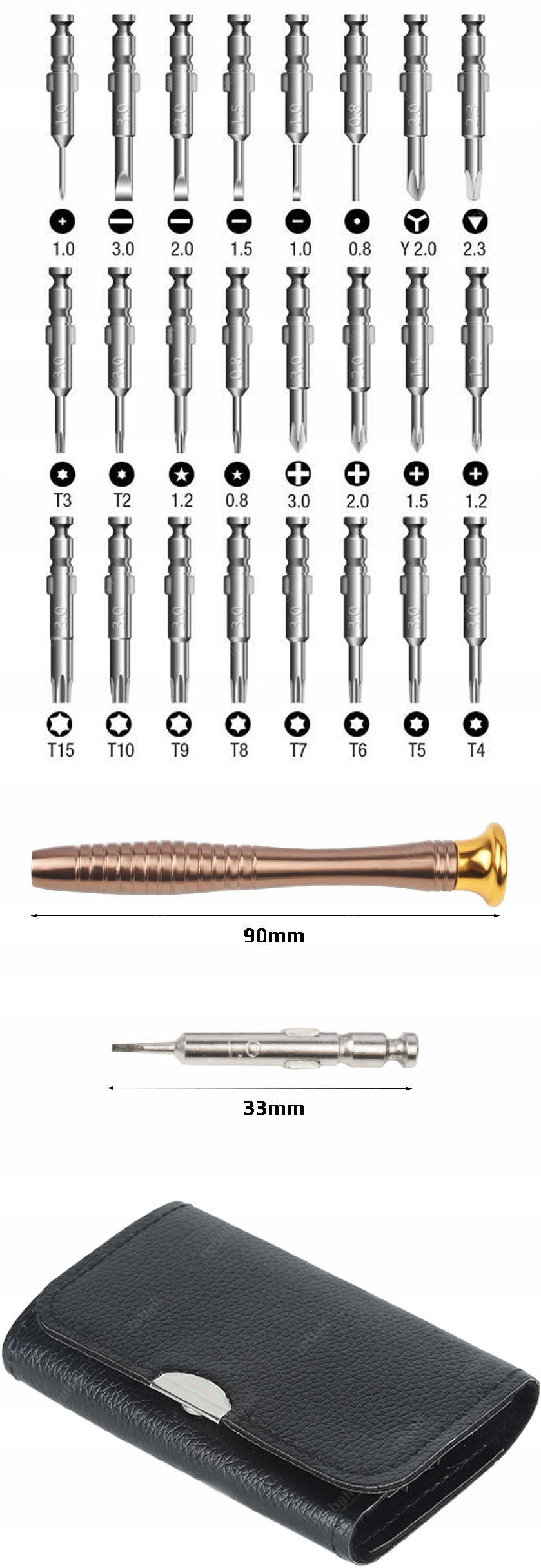 Praktyczny zestaw serwisowy składający się z uchwytu bazowego i kompletu 24 popularnych końcówek magnetycznych.